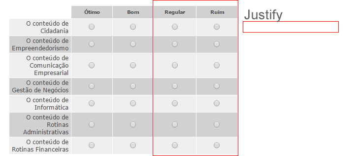 You will need to add following short-text questions and use conditions or relevance to only show them when "Regular" or "Ruim" are selected.