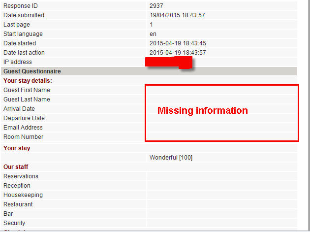 The problem now is on the submission responses itself but only certain. Client has reported to us that submission responses received is incomplete, guest details section is missing. When I checked from admin page, I can see that they are 2 records generated for this particular guest (identify by IP) at the same day but 1 of them with only Guest details and status - N (e.g. record A) and the other 1 with survey result but missing guest details and status - Y (e.g. record