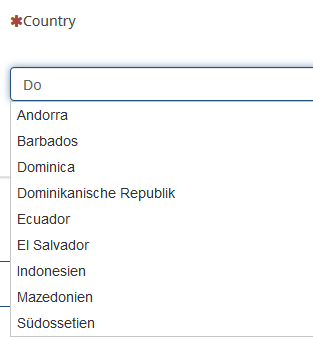 <script type="text/javascript" charset="utf-8"> $(document).ready(function() { $('#question{QID} input[type="text"]').autocomplete({ minLength: 2, source: ["Test1","Test2","Test3","Afghanistan", "Ägypten", "Albanien", "Algerien", "Andorra", "Angola", "Antigua und Barbuda", "Äquatorialguinea", "Argentinien", "Armenien", "Aserbaidschan", "Äthiopien", "Australien", "Bahamas", "Bahrain", "Bangladesch", "Barbados", "Belgien", "Belize", "Benin", "Bergkarabach", "Bhutan", "Bolivien", "Bosnien und Herzegowina", "Botswana", "Brasilien", "Brunei", "Bulgarien", "Burkina Faso", "Burundi", "Chile", "Volksrepublik China", "Cookinseln", "Costa Rica", "Dänemark", "Deutschland", "Dominica", "Dominikanische Republik", "Dschibuti", "Ecuador", "El Salvador", "Elfenbeinküste", "Eritrea", "Estland", "Fidschi", "Finnland", "Frankreich", "Gabun", "Gambia", "Georgien", "Ghana", "Grenada", "Griechenland", "Guatemala", "Guinea", "Guinea-Bissau", "Guyana", "Haiti", "Honduras", "Indien", "Indonesien", "Irak", "Iran", "Irland", "Island", "Israel", "Italien", "Jamaika", "Japan", "Jemen", "Jordanien", "Kambodscha", "Kamerun", "Kanada", "Kap Verde", "Kasachstan", "Katar", "Kenia", "Kirgisistan", "Kiribati", "Kolumbien", "Komoren", "Kongo, Demokratische Republik", "Kongo, Republik", "Korea, Nord", "Korea, Süd", "Kosovo", "Kuba", "Kuwait", "Laos", "Lesotho", "Lettland", "Libanon", "Liberia", "Libyen", "Liechtenstein", "Luxemburg", "Madagaskar", "Malawi", "Malaysia", "Malediven", "Mali", "Malta", "Marokko", "Marshallinseln", "Mauretanien", "Mauritius", "Mazedonien", "Mexiko", "Mikronesien", "Moldawien", "Monaco", "Mongolei", "Montenegro", "Mosambik", "Myanmar", "Namibia", "Nauru", "Nepal", "Neuseeland", "Nicaragua", "Königreich der Niederlande", "Niger", "Nigeria", "Niue", "Nordzypern", "Norwegen", "Oman", "Österreich", "Osttimor / Timor-Leste", "Pakistan", "Palästina", "Palau", "Panama", "Papua-Neuguinea", "Paraguay", "Peru", "Philippinen", "Polen", "Portugal", "Ruanda", "Rumänien", "Russland", "Salomonen", "Sambia", "Samoa", "San Marino", "São Tomé und Príncipe", "Saudi-Arabien", "Schweden", "Schweiz", "Senegal", "Serbien", "Seychellen", "Sierra Leone", "Simbabwe", "Singapur", "Slowakei", "Somalia", "Somaliland", "Spanien", "Sri Lanka", "St. Kitts und Nevis", "St. Lucia", "St. Vincent und die Grenadinen", "Südafrika", "Sudan", "Südossetien", "Südsudan", "Suriname", "Swasiland", "Syrien", "Tadschikistan", "Taiwan", "Tansania", "Thailand", "Togo", "Tonga", "Transnistrien", "Trinidad und Tobago", "Tschad", "Tschechien", "Tunesien", "Türkei", "Turkmenistan", "Tuvalu", "Uganda", "Ukraine", "Ungarn", "Uruguay", "Usbekistan", "Vanuatu", "Vatikanstadt", "Venezuela", "Vereinigte Arabische Emirate", "Vereinigte Staaten", "Vereinigtes Königreich", "Vietnam", "Weißrussland", "Westsahara", "Zentralafrikanische Republik", "Zypern"] }); }); </script>