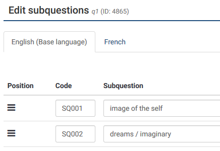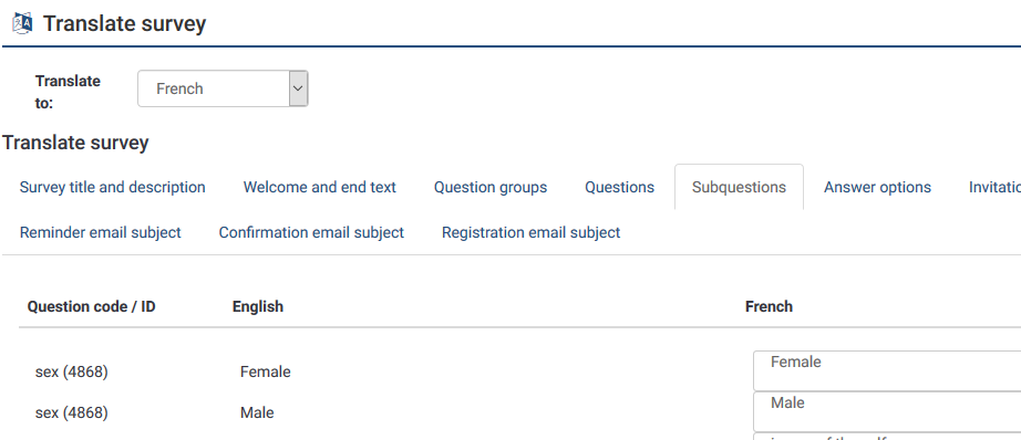 What is your issue? Your screenshot is not showing a question screen.jessicapidoux wrote: Hi , I have the same issue as chris. I wonder if there is an easier way to translate my questions through the GUI instead of doing it by changing the files.