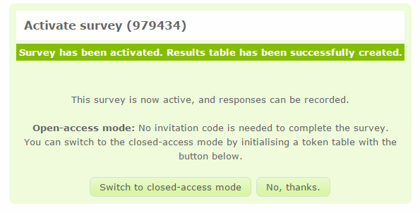 At this point you decide if you want open access or closed access mode (tokens).