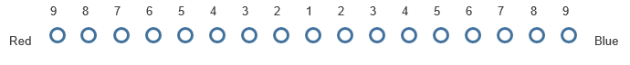 Q. Which color do you like? selecting 1 is equal, selecting radio button on either side is higher preferred against another (scale 9 to 1 to 9 radio button type)