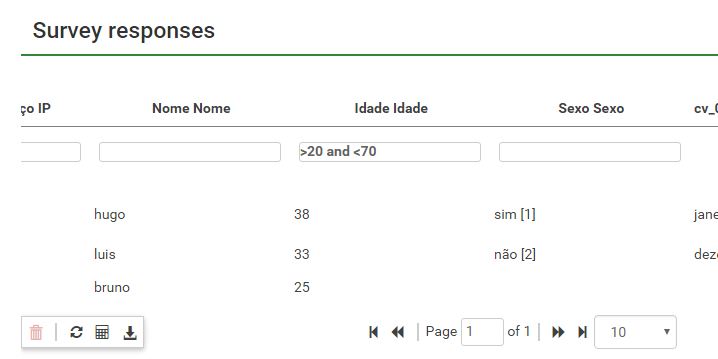 In Limesurvey, if i want to filter the age of interviewers that have mor than 20 and less than 50, i can do this in the "browse responses"?