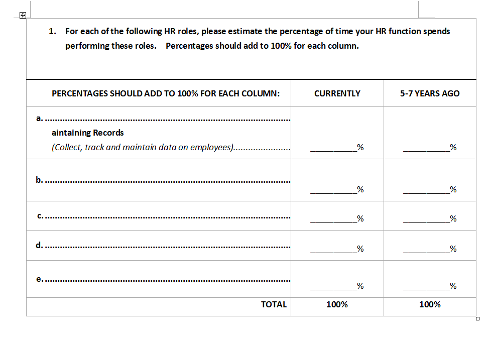 - One column totals to 100