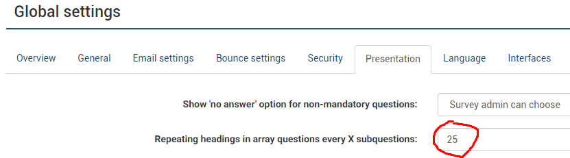 I have 23 subquestions in an array and after the first 20 the category/column titles for the answers appear again in the middle of the array. Can I get rid of them?