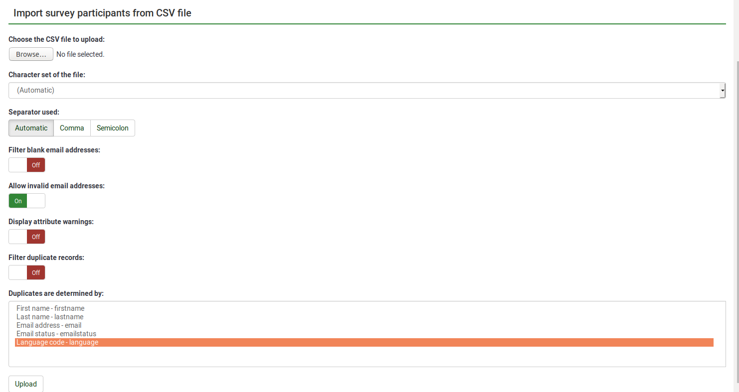 For narrowing the issue create a new participant list. Create one dummy participant. Export the CSV. Compare it to your CSV you want to import. Perhapy copy and paste a few participants into the dummy export and import that file.bulgin wrote: However, whenever I import .csv file without errors something is happening in that process - despite no error messages - that does not trigger the system to recognize the same token over and over again.