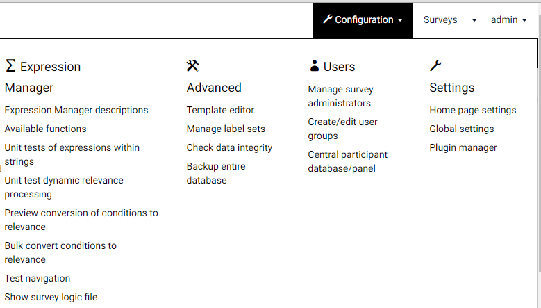 Exactly same here. Latest release (2.5 - 160715) and I never had the EM entry in admin, never knew it even existed ! EM is what I love most about LS and I would happier to see its own admin/settings !Joffm wrote: Hi, all