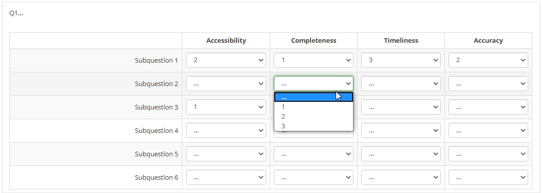 in general I want to make the selection from numbers 1,2 and 3 in every column.