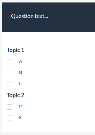 <script charset="utf-8" type="text/javascript"> $(document).ready(function() { $( '#question{QID} .question-item:eq(0)').addClass('hide-pseudo-elements').find('input.checkbox').remove(); }); </script>