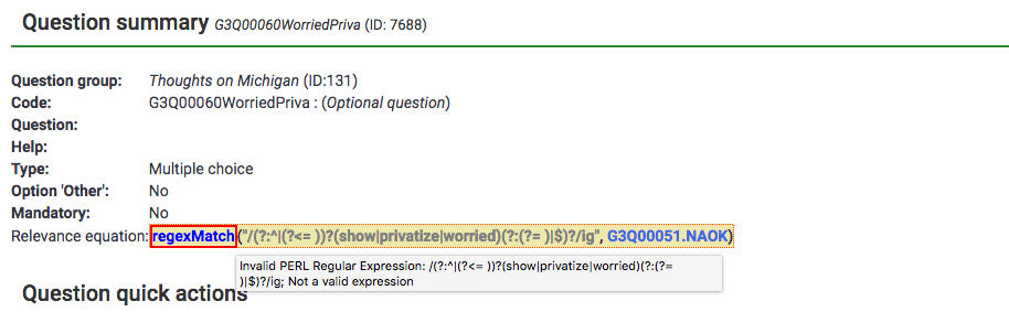 I am trying to use a regexMatch in a Relevance equation to trigger the presentation of checkboxes. I want to use the i (case insensitive) option on the expression but when I enter it into the Conditions designer the returned expression is bounded automatically by the delimiters '/'.