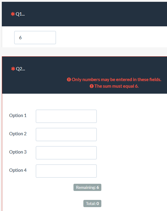I'm an Offline Surveys user, and am trying to design a survey on Limesurvey. For one of the questions, a multiple answers with comments, I need for the comments to forcibly "add up" to an amount answered in the previous question.