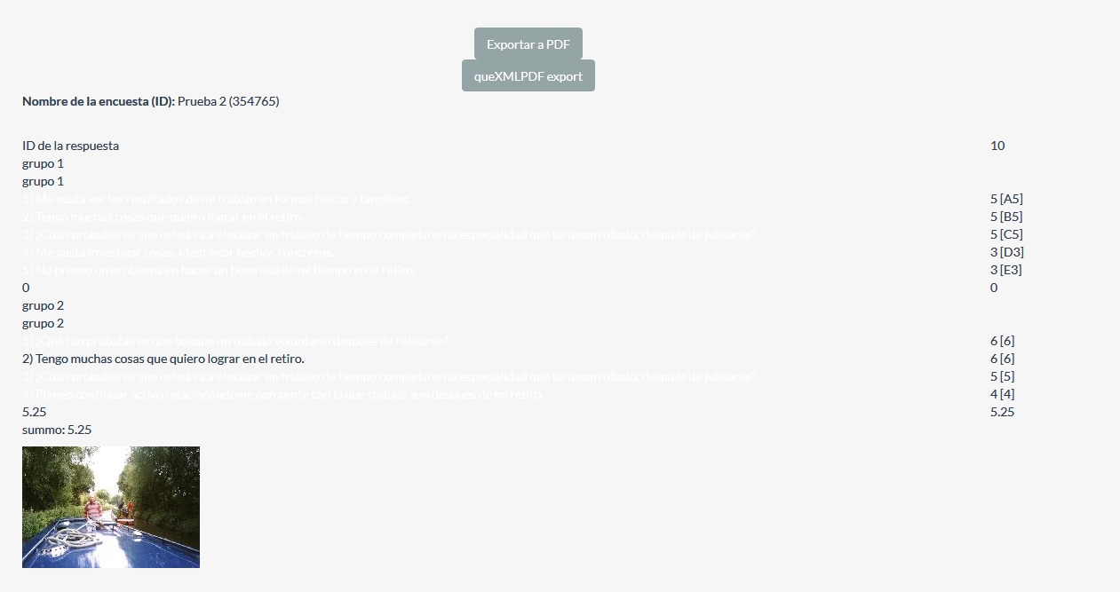 I mean, the survey is not public nor anonymous. I'm going to send invitations (tokens), and when the participants finish the survey, I want to print/export (to PDF) the report of each participant as the image that you've attached. Example