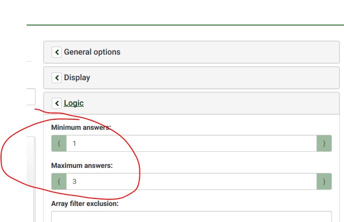 Is it possible to limit multiple type question to maximum three answers only? I would like to offer 10 answers but respondents should click three of them? How I can implement this into a question?