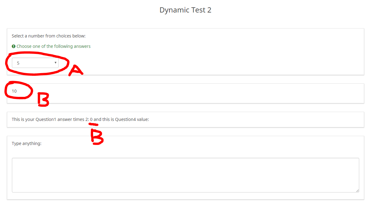 Question3 (text display): This is your Question1 answer times 2: {Question2} and this is Question4 value: {Question4}