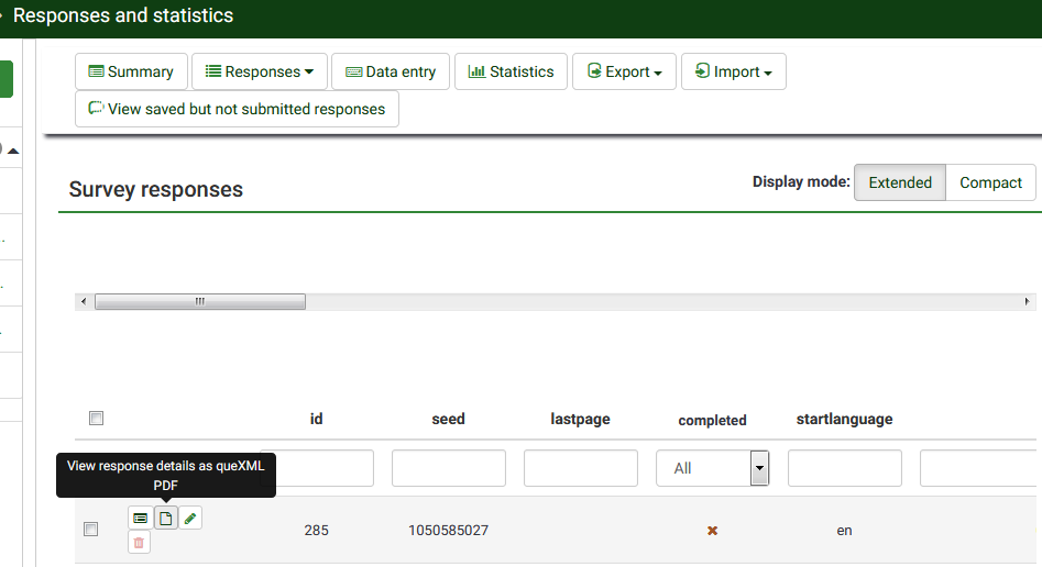 <a class="btn btn-default btn-xs" href="/index.php/admin/responses/sa/viewquexmlpdf/surveyid/312538/id/285" target="_blank" role="button" data-toggle="tooltip" title="" data-original-title="View response details as queXML PDF"><span class="fa fa-file-o"></span></a>