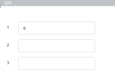 <script type="text/javascript" charset="utf-8"> $(document).ready(function(){ $('#question{QID} input[type="text"]').keyup(function () { if ($(this).val().length >= 1) { $(this).closest('.answer-item').next('.answer-item').find('input[type="text"]').focus(); } }); }); </script>