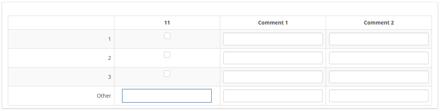 <script type="text/javascript" charset="utf-8"> $(document).on('ready pjax:scriptcomplete',function(){ $('#question{QID}').cbArrayComments3({ column: 3 // Text Input column (-1 will default to last column) }); }); </script>