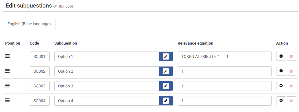 I have a number of participants on a closed access survey with tokens. Some of them have to answer to some questions (mutiple variants) with yes, no or abstain and other must have one of the answers (yes, no or abstain) already checked on a variant of the question and can answer only to the other variants.