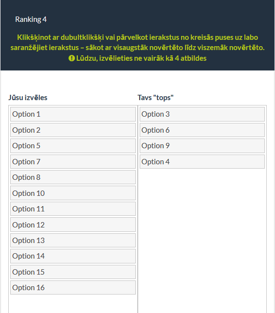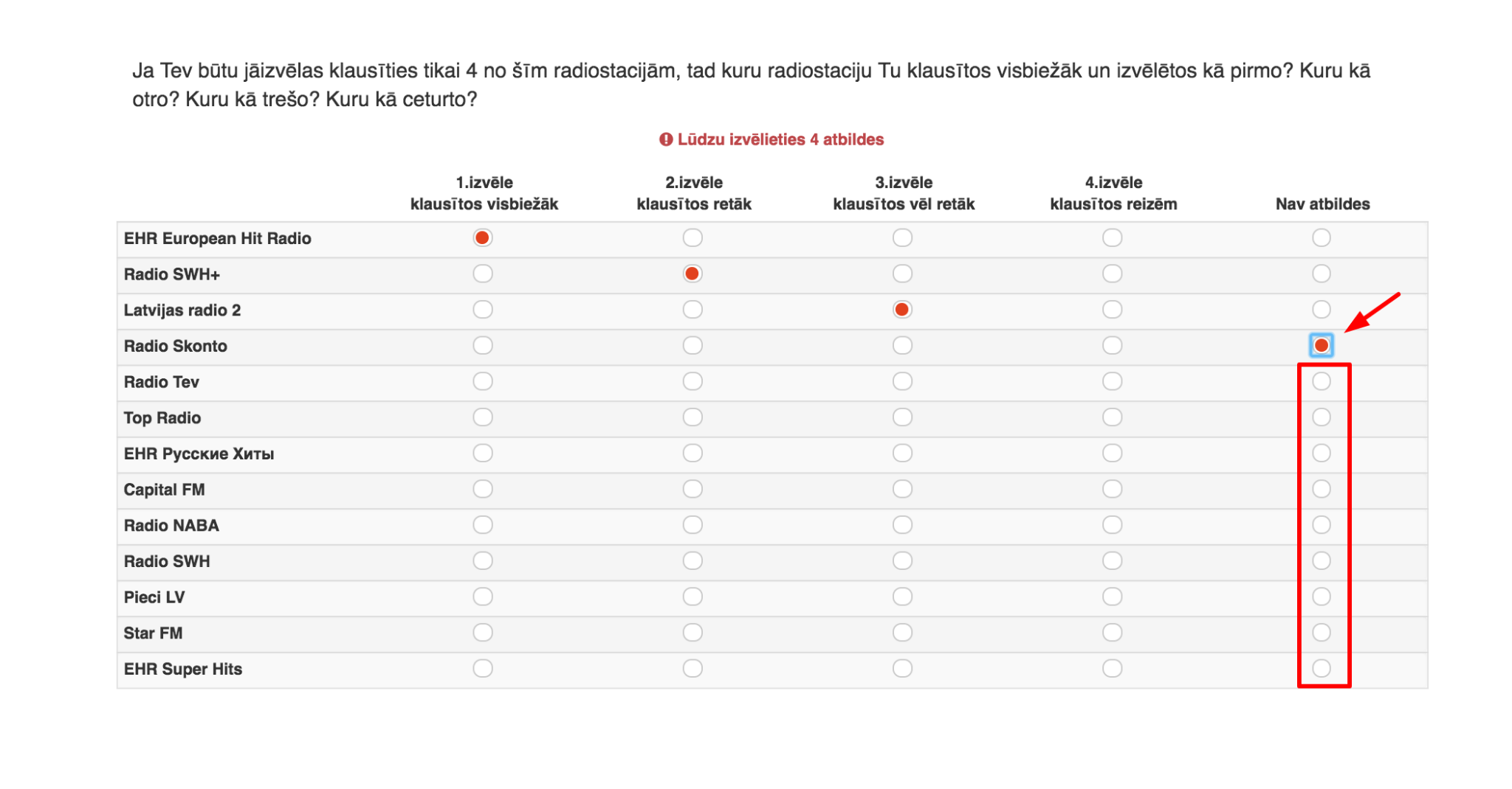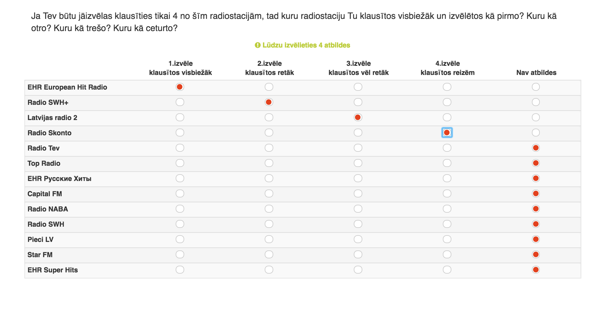 Question translates to following - "Please select priority in which you would prefer to listen to following radio stations". And they select "1st priority", 2nd, and so on un to fourth.