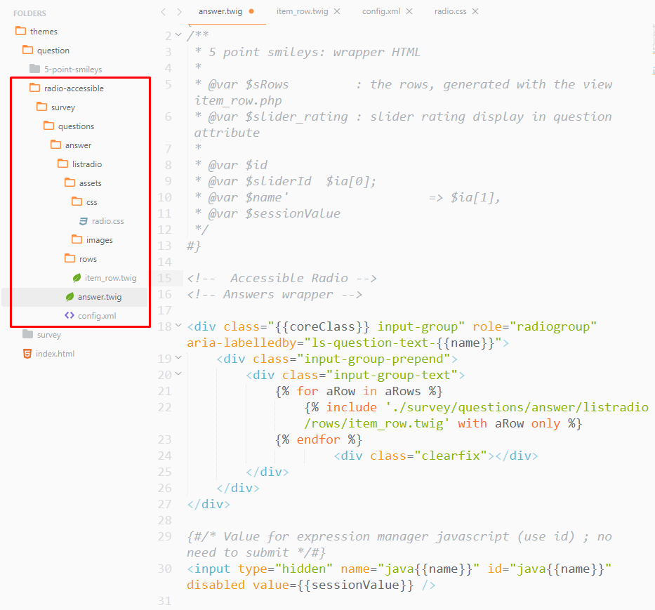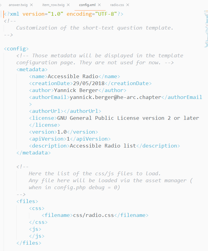 My goal was to make the radio-list question accessible for person with disabilities because it was not fully the case. Accessibility guidelines required the radio-input element to be sourrounded by a <fieldset> with an accurate aria-label wich is now done with my question theme.