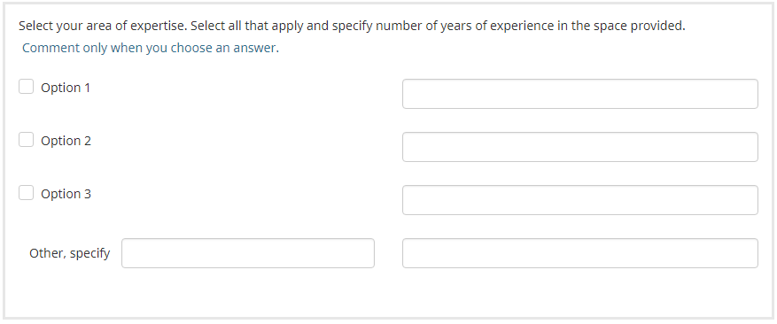 {if(is_empty(Expertise_SQ001comment.NAOK) or regexMatch('/^[1-9][0-9]{0,4}$/', Expertise_SQ001comment.NAOK), '' , 'Only numbers are allowed')} {if(is_empty(Expertise_SQ002comment.NAOK) or regexMatch('/^[1-9][0-9]{0,4}$/', Expertise_SQ002comment.NAOK), '' , 'Only numbers are allowed')} {if(is_empty(Expertise_SQ003comment.NAOK) or regexMatch('/^[1-9][0-9]{0,4}$/', Expertise_SQ003comment.NAOK), '' , 'Only numbers are allowed')} {if(is_empty(Expertise_othercomment.NAOK) or regexMatch('/^[1-9][0-9]{0,4}$/', Expertise_othercomment.NAOK), '' , 'Only numbers are allowed')}
