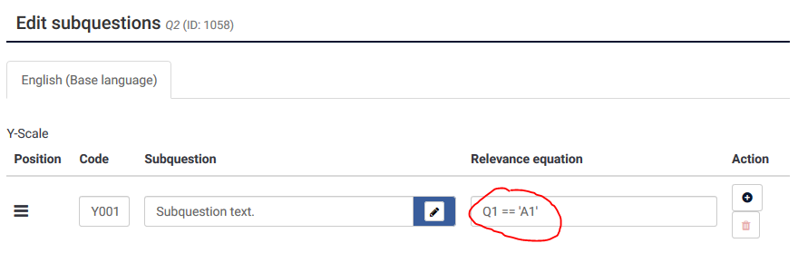 i have an array that has 20 subquestions, but based on previous answer, not all of those 20 subquestions might apply, so is there a way to hid or show a subquestion based on a previous answer of another question?