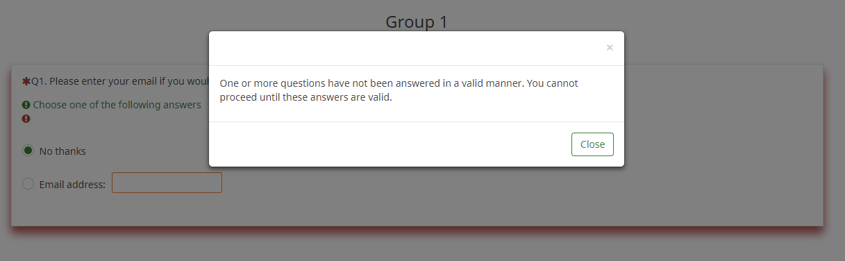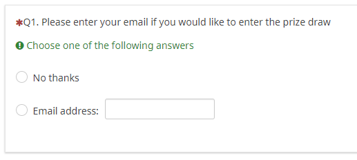 regexMatch('/^(\w[-._+\w]*\w@\w[-._\w]*\w\.\w{2,3})$/', Q1_other)) AND (!is_empty(Q1_other)) OR (Q1=="A1")