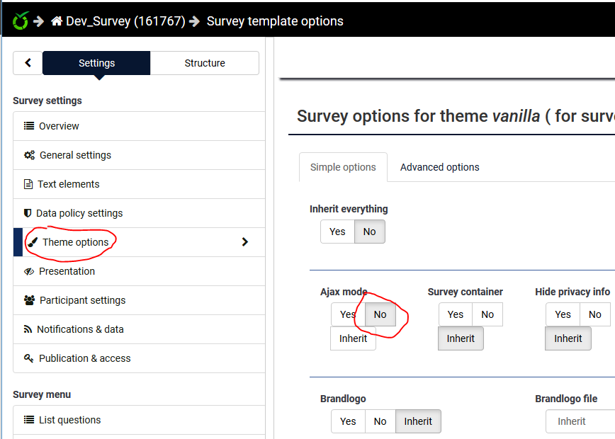 Any idea why it works with AJAX on in the other displaymode? The different displaymodes alone are a nice source of bugs.tpartner wrote: The attached sample survey works for me in group-by-group if I disable AJAX mode in the theme options.