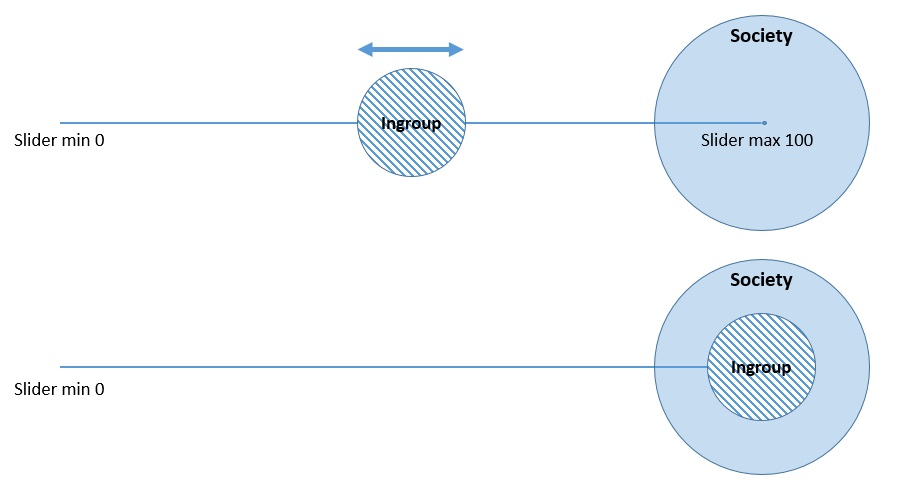 .ingroup-slider .control-label, .ingroup-slider .slider-horizontal .tooltip, .ingroup-slider .slider-horizontal .slider-track > div { display: none !important; } .ingroup-slider .answer-item > div.col-sm-8 { width: 100% !important; } .ingroup-slider .slider-container { padding: 75px 75px 75px 25px; } .ingroup-slider .slider-horizontal.slider::before { position: absolute; top: 0%; left: 100%; width: 150px; height: 150px; margin-top: -75px; margin-left: -75px; padding-top: 5px; content: 'Society'; text-align: center; font-weight: bold; border: 1px solid #3972A8; border-radius: 50%; background-color: #C6DCF1; } .ingroup-slider .slider-horizontal .slider-track { height: 2px; margin-top: -10px; background-image: none; filter: none; -webkit-box-shadow: none; box-shadow: none; border-radius: 2px; background: #3972A8; } .ingroup-slider .slider-horizontal .slider-track::before, .ingroup-slider .slider-horizontal .slider-track::after { position: absolute; top: 50%; left: 0; width: 6px; height: 6px; margin-left: -3px; margin-top: -3px; content: ''; border-radius: 50%; background: #3972A8; } .ingroup-slider .slider-horizontal .slider-track::after { left: 100%; } .ingroup-slider .slider-horizontal .slider-handle { position: relative; top: -40px; width: 80px; height: 80px; margin-left: -40px; filter: none; -webkit-box-shadow: none; box-shadow: none; border: 1px solid #9CBEDD; background-color:transparent; background-image: repeating-linear-gradient(45deg, #FFFFFF, #FFFFFF 6px, #9CBEDD 6px, #9CBEDD 9px); outline: none !important; } .ingroup-slider .slider-horizontal .slider-handle::before { position: absolute; top: 50%; width: 100%; margin-top: -0.75em; content: 'Ingroup'; text-align: center; font-weight: bold; }
