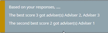 I think the graphic is simply to indicate which advisors get a point for each answer and that there are seven more similar list-radio questions. In that case, you would need to sum the results from all questions as my abbreviated example indicates.You don't need to sum anything. You just check which item is answered and then write the name of the advisors.