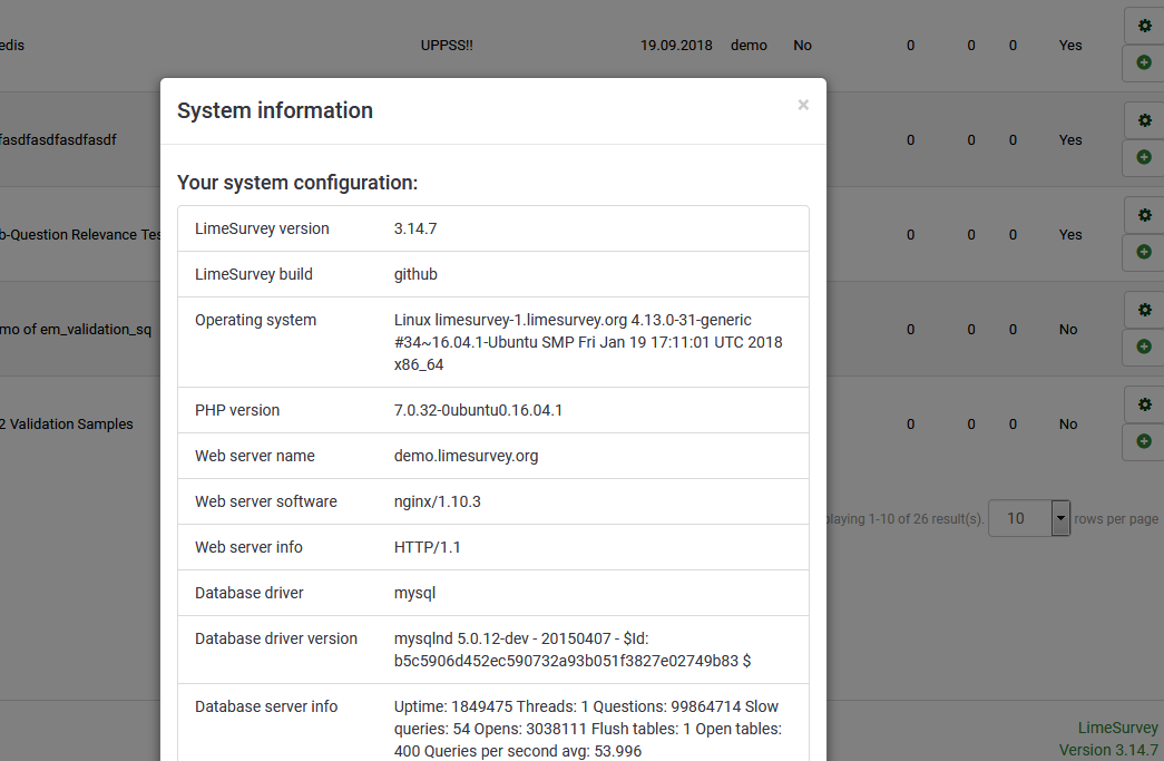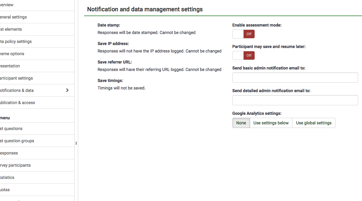 What version of LimeSurvey is used? Look at the bottom. You can click on the version number and will get more infos about the installation in a window.matthisd wrote: The only explanation I have is that I might have entered an email address in the notification setting at some point and then removed it, but that the setting remained active anyway. Not sure if you would like me to test that possibility in case it is a bug?