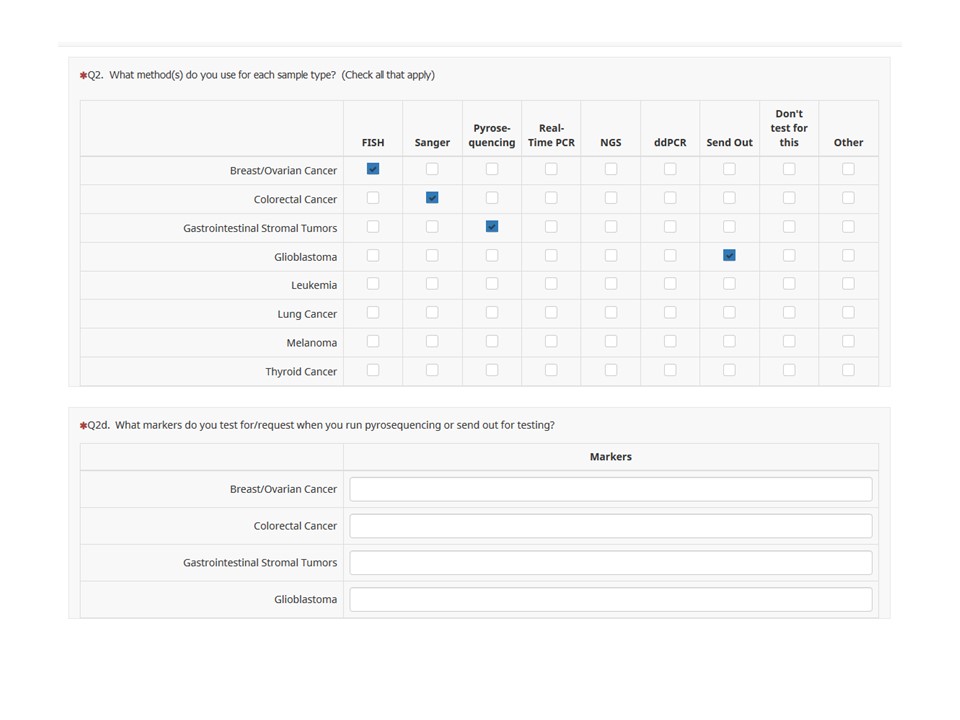I am trying to figure out how to get the sub-questions in Q2d to filter based off of columns 3 (pyrosequencing) and 7 (send out) only. The way I have it now, it is filtering off of all columns that have a check mark.