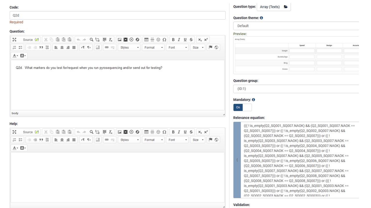Step 3 - enter relevance equations for each subquestion for Q2b so only the subquestions in columns 3 or 7 show up when selected.