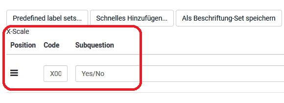 <script type="text/javascript" charset="utf-8"> $(document).on('ready pjax:scriptcomplete',function(){ var thisQuestion = $('#question{QID}'); // Insert selects $('.answer-item.answer_cell_X001', thisQuestion).addClass('with-select').append('<select class="inserted-select form-control list-question-select">\ <option value="">Please choose...</option>\ <option value="1">Yes</option>\ <option value="2">No</option>\ </select>'); // Listeners $('.inserted-select', thisQuestion).on('change', function(i) { if($(this).val() != '') { $(this).closest('.answer-item').find('input:text').val($.trim($('option:selected', this).text())).trigger('change'); } else { $(this).closest('.answer-item').find('input:text').val('').trigger('change'); } }); // Returning to page $('.with-select input:text', thisQuestion).each(function(i) { var thisCell = $(this).closest('.answer-item'); var inputText = $.trim($(this).val()); var selectval = $('select.inserted-select option', thisCell).filter(function () { return $(this).html() == inputText; }).val(); $('select.inserted-select', thisCell).val(selectval); }); // Clean-up styles $('select.inserted-select', thisQuestion).css({ 'max-width': '100%' }); $('.with-select input:text', thisQuestion).css({ 'position': 'absolute', 'left': '-9999em' }); }); </script>