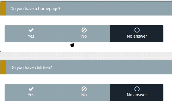 No --> nothing happens and the user can continue to the next question.