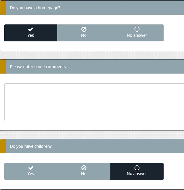 I have a question to see if this is possible and if yes how I could do it. I have 9 question groups that will have around 4 to 11 questions of the same yes/no type. What I would like to achive is that if a user clicks yes that there will be a comment/text field where the user can enter a comment.