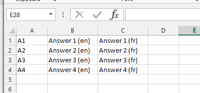 tpartner wrote: You add all of the languages at the same time, each row contains tab or semi-colon separated values for the answer code and text in each language.