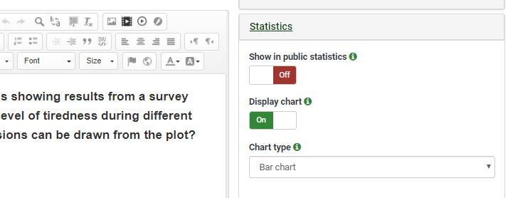 Here you have an example. On the left you find a correctly displayed statistic and on the right a incorrectly displayed one. (each answer has been answered at least by one or two participants)