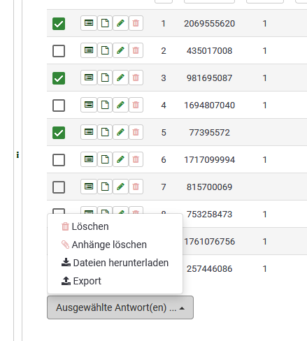 When you e.g. select the first, the third and the fifth response via checkbox and than select export you will get to the screen where you can export all answers, but have the selection prefilled.holch wrote: while at the screen where he was at he can only export exactly this one response of that specific respondents.
