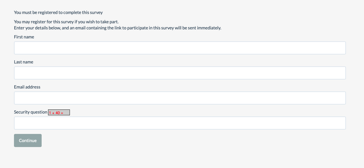 I don't want any of their information: I don't want them to enter an email address, their name, etc. It all has to be completely confidential. I can't distribute tokens to participants manually because I'm not supposed to have any contact with them.