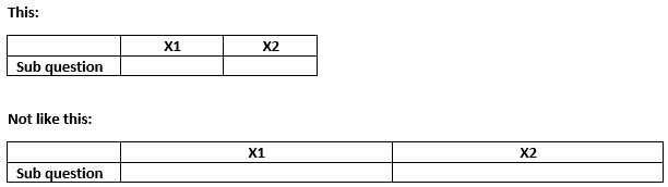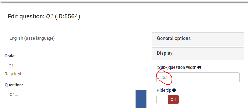 I have a sub question width attribute (which changes the width of the question) and a text input size (which changes the text box width), but the latter does not change the column width.