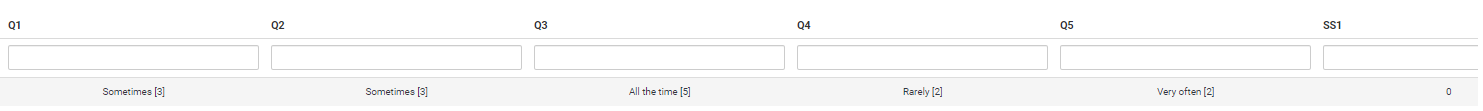 I would also like to do this for the average of these questions. So if I have Q1, Q2, Q3, Q4, and Q5 which are all Question Type: List (radio) and the resulting answers will show numbers 1-5 for each of the answers selected I would like Field A1 (Question Type: Equation) to include the average of those numbers. I assume that if I get the correct syntax above that the average syntax might be something like {SUM(Q1,Q2,Q3,Q4,Q5) / COUNT(Q1,Q2,Q3,Q4,Q5)} or something like that since I do not see an average function in EM.