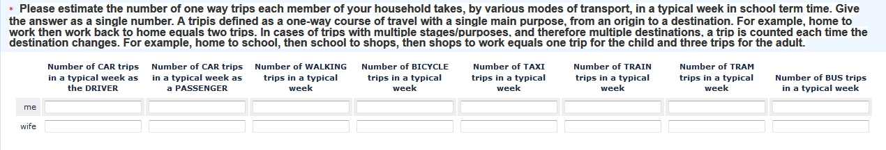 Better to have the explanation separately. And the repeated "number of ... in a typical week" also should be separated as a general hint.