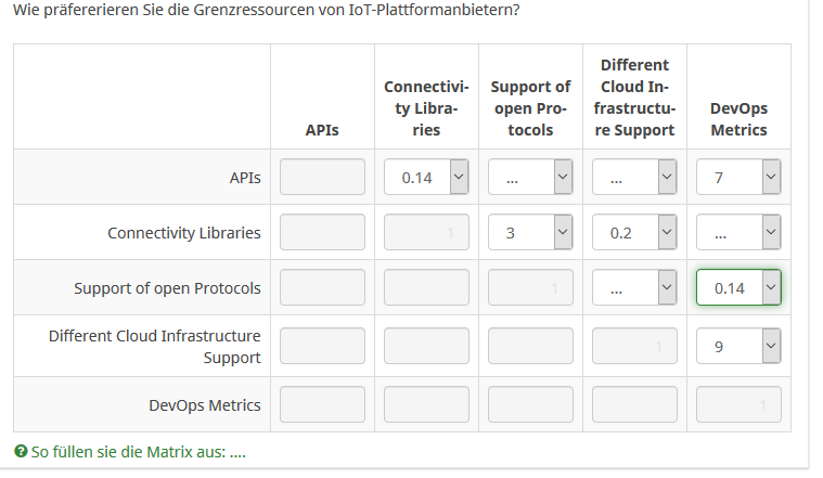 Remember, if you show, participant may enter new data, or you have to disable all cells of this question, too.enable a consistency self-check for the survey participants