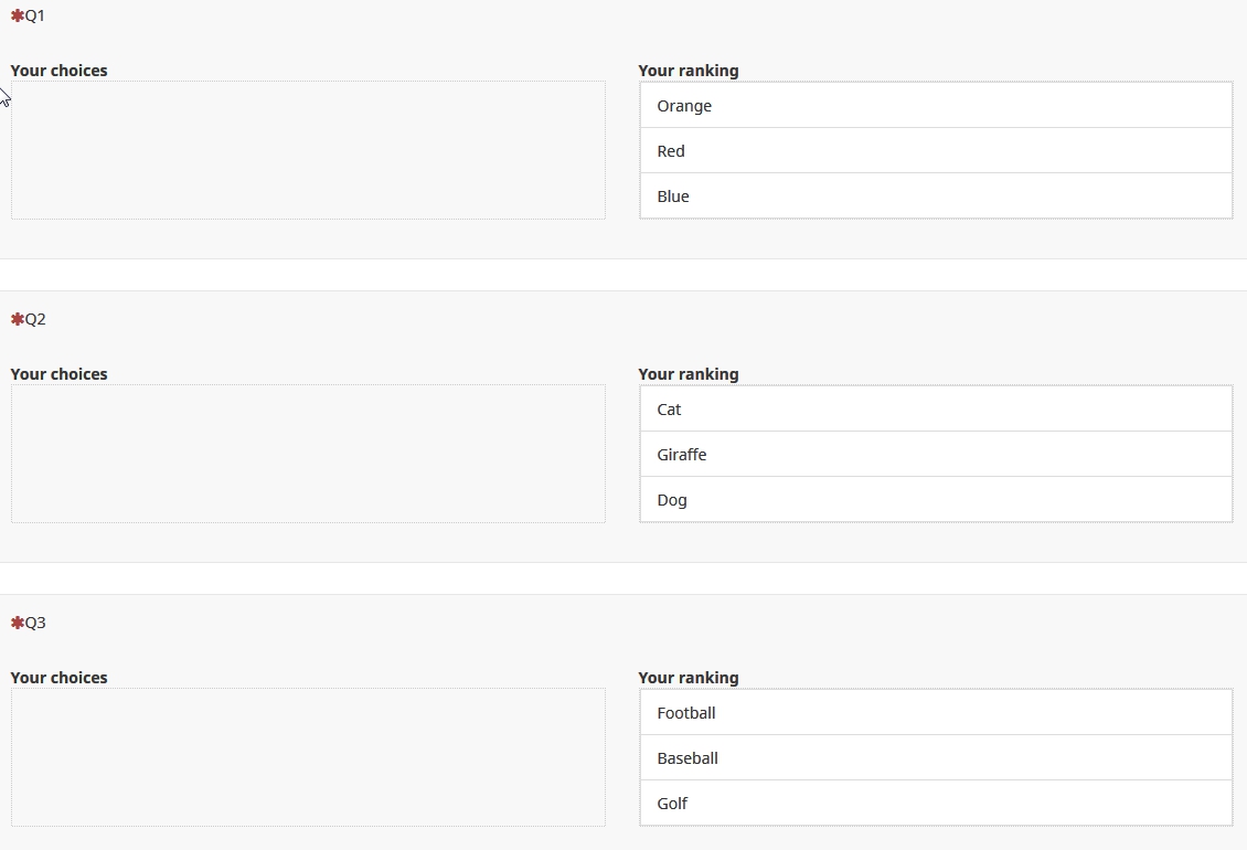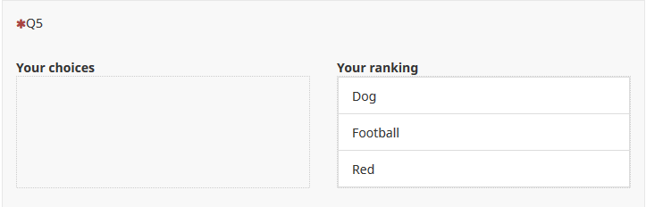 Q5 uses the first existing in each column, and afterwards the 1st ranked is removed from the array.
