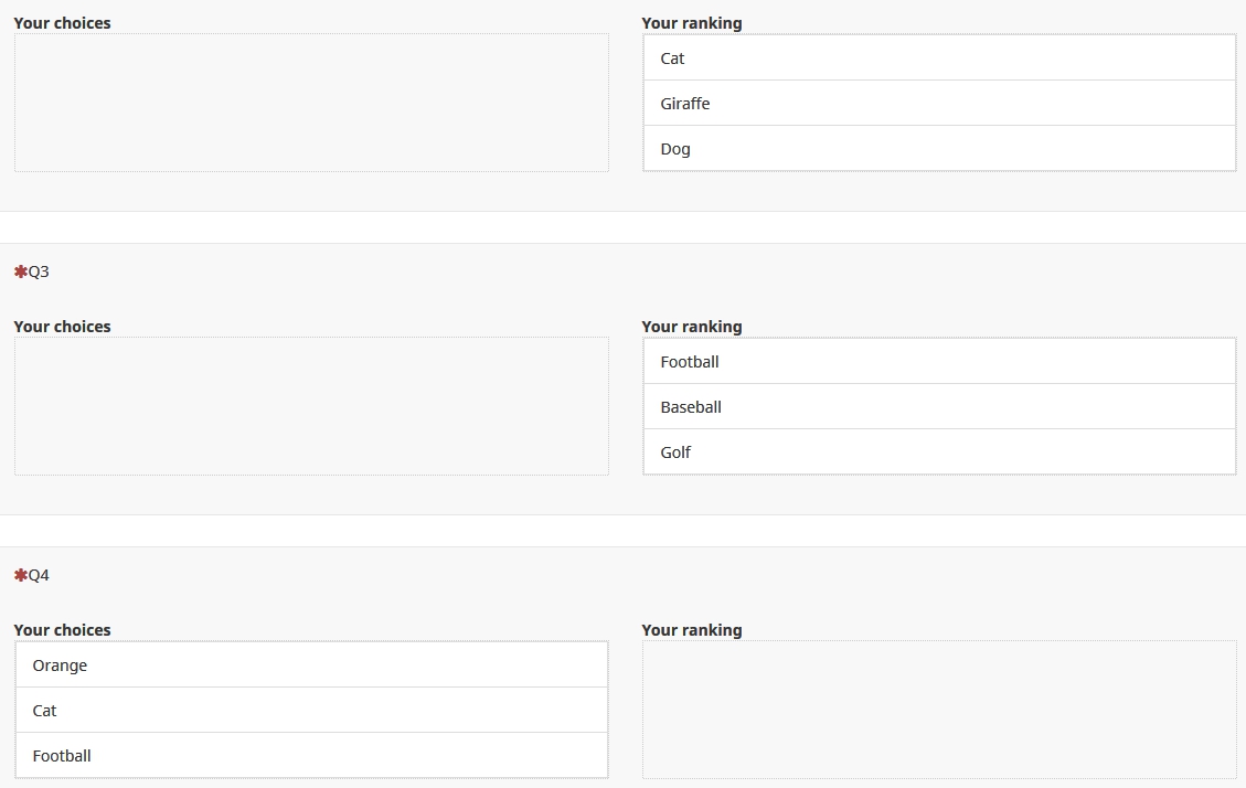 Therefore I only show for Q4. I use answer option codes "1", "2, "3"