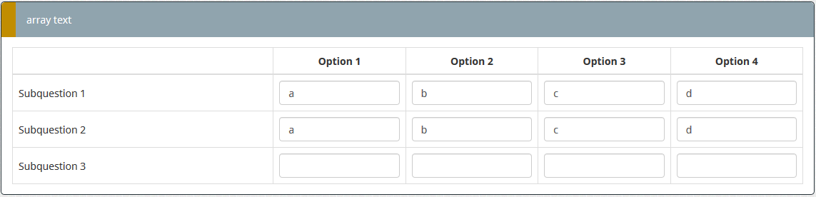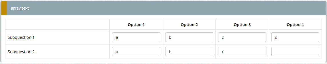 !is_empty(Q1_SQ002_X001) and !is_empty(Q1_SQ002_X002) and !is_empty(Q1_SQ002_X003) and !is_empty(Q1_SQ002_X004)