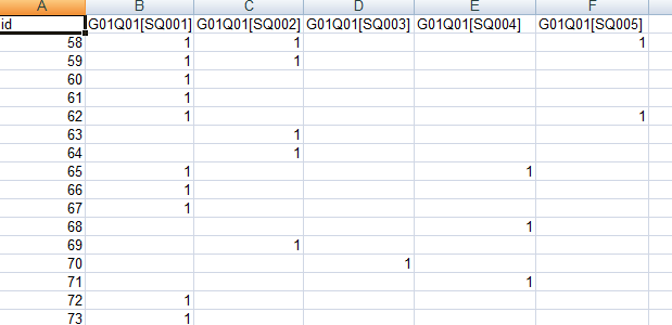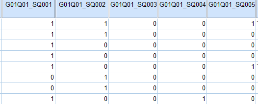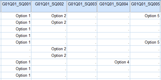 // Print out the value labels! echo "VALUE LABELS {$field['id']}\n"; $i = 0; foreach ($answers as $answer) { $i++; if ($field['SPSStype'] == "F" && isNumericExtended($answer['code'])) { $str = "{$answer['code']}"; } else { $str = "\"{$answer['code']}\""; } // If multi-choice, use variable label as value label $title = $field['VariableLabel']; preg_match("/\[(.*)\]/", $title , $matches); $valueLabel = $matches[1]; if ($i < count($answers)) { echo ($field['LStype'] == "M" ? " $str \"{$valueLabel}\"\n" : " $str \"{$answer['value']}\"\n"); } else { if ($field['LStype']=="M") { echo ($answer['code'] == 0 ? ".\n" : " $str \"{$valueLabel}\".\n"); } else { echo " $str \"{$answer['value']}\".\n"; } } }