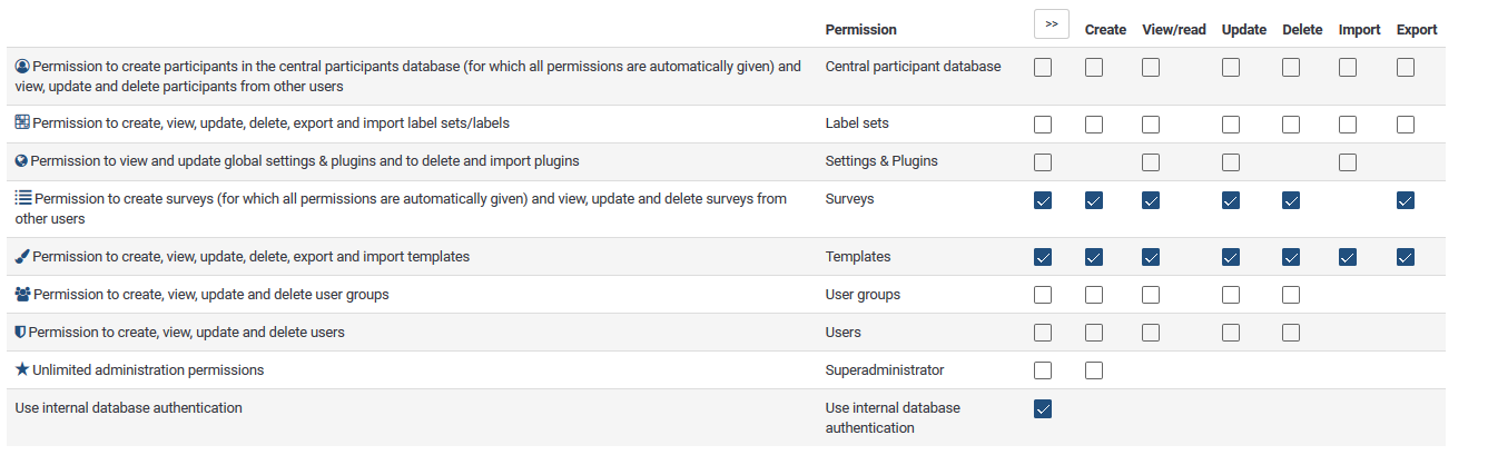 I would like to know if it is possible that different users that I have in LimeSurvey can only see the surveys in which they are registered, or only those surveys that they own.