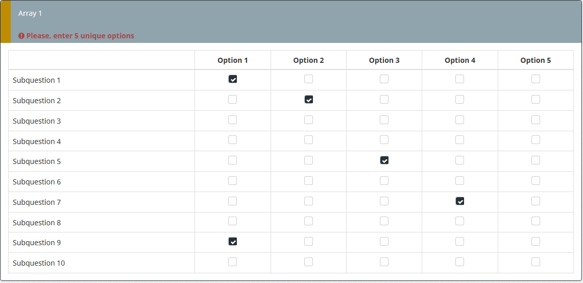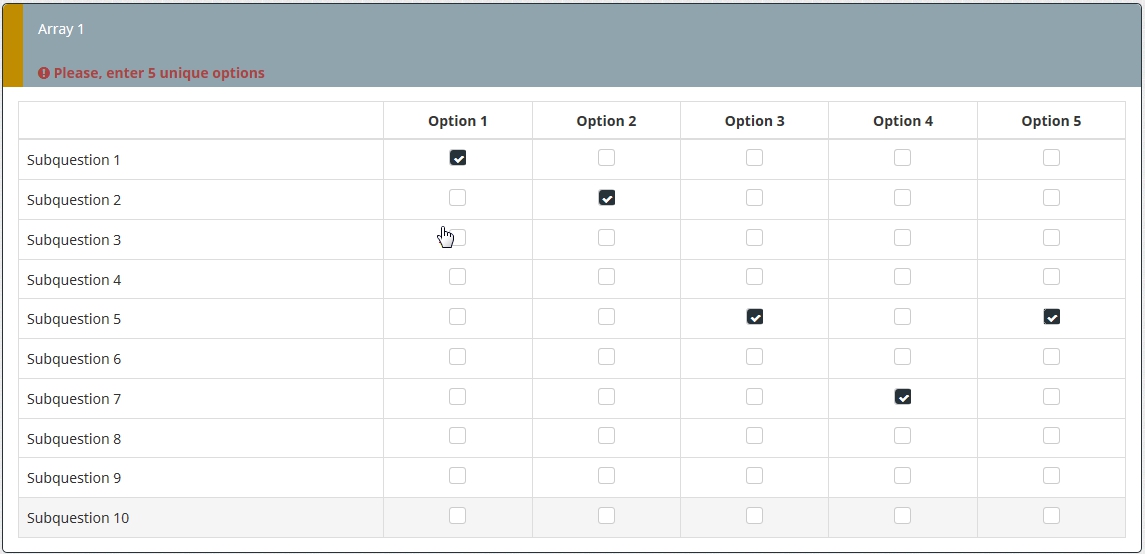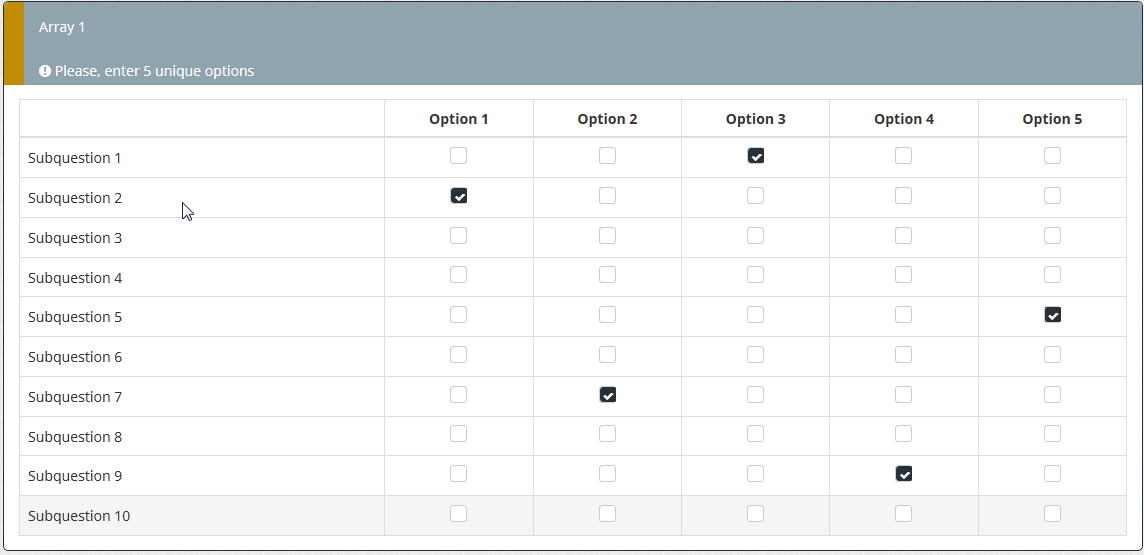 And why do you use an array in the second question? Here a simple multiple question is sufficient.